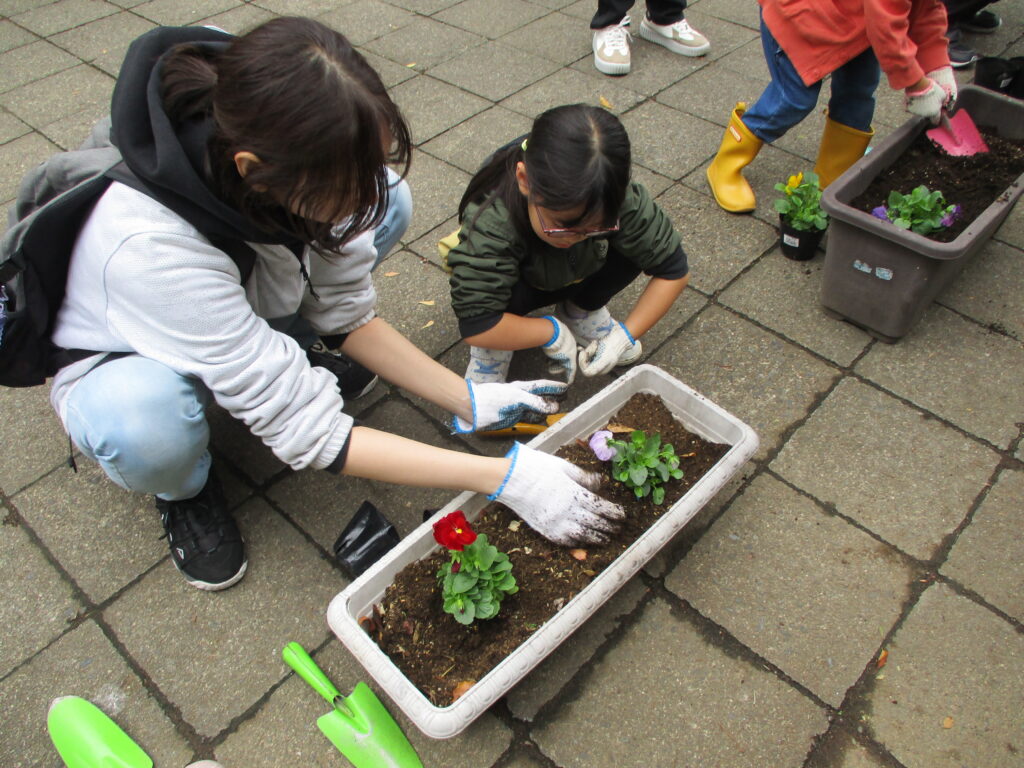 花壇づくりでは、本日に引き続きお花を植えます🌼