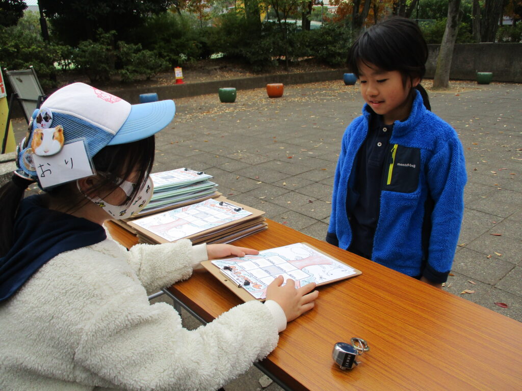 受付で動物クラブの子供たちからビンゴ用紙と地図をもらってスタート!