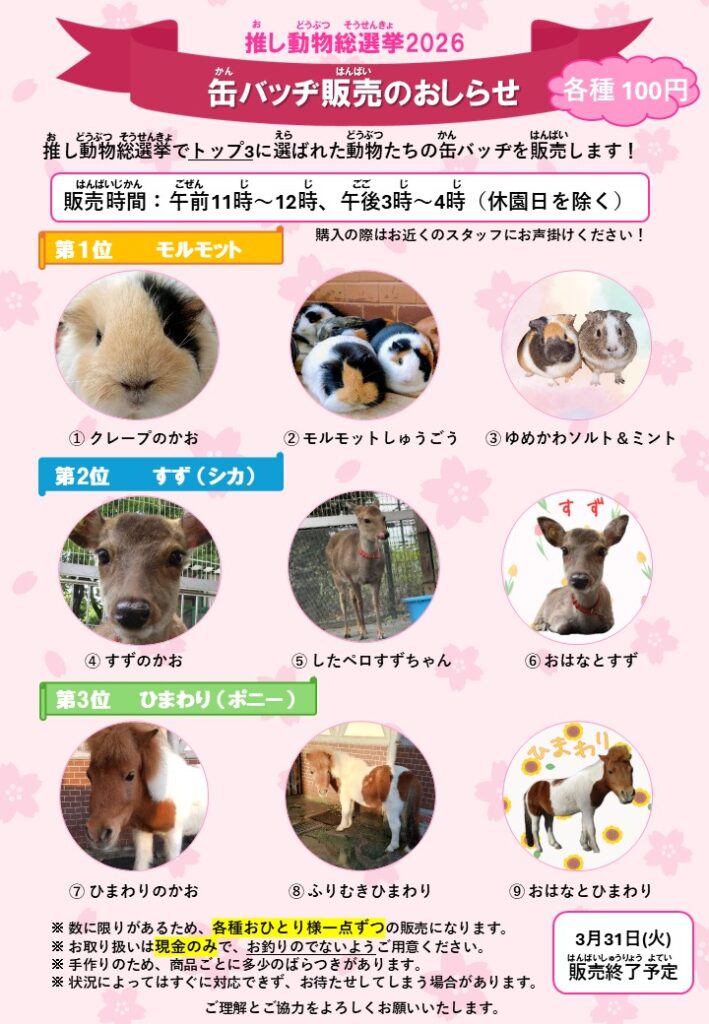かわいい動物たちの缶バッヂをつけて春のお出かけにいかがでしょうか🌺